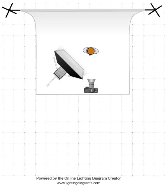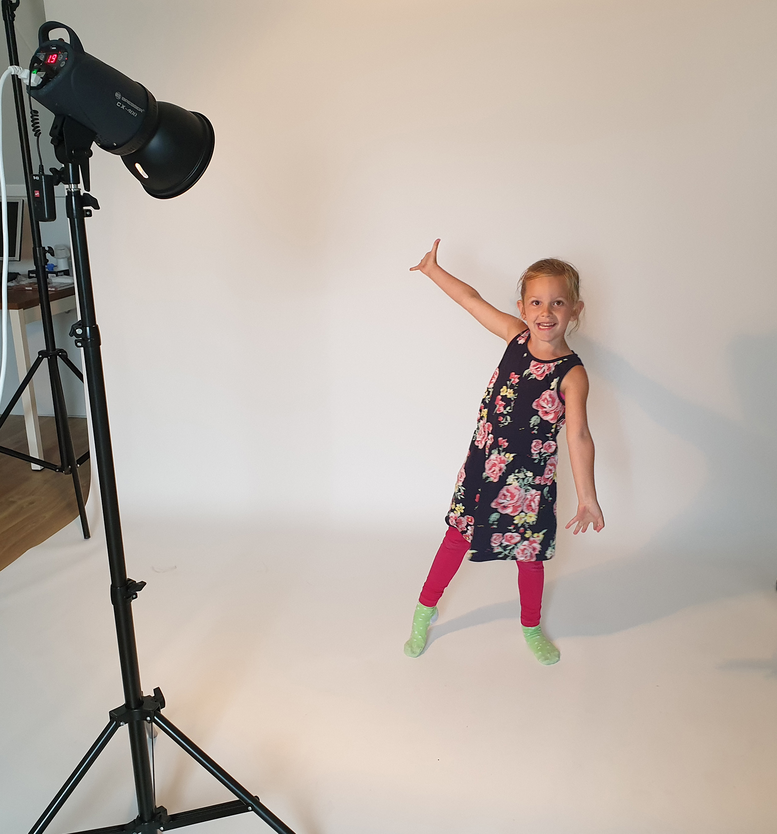 Hieronder zie je de opstelling die ik gebruikt heb. Een enkele lichtbron, een flitser met kleine reflector erop, op een hoek van ongeveer 45 graden. Deze lichtbron had ook een raam kunnen zijn.
